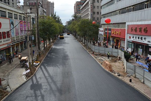 樂育南路以“交通擴容”為原則,將雙向二車道改為雙向四車道,同時在原排水磚砌箱涵的基礎上,將其改造成電力管溝,新建雨水箱涵。除了進行熱力管道維修和雨污分離管道建設外,把之前的非機動車道向兩側(cè)移動,在人行道上開辟出非機動車道。